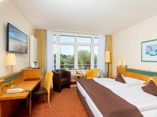Auf Rügen und in diesem Hotel habe ich mich sehr wohl gefühlt. Besonders gut gefallen hat mir, dass, obwohl das Hotel gut besucht war, eine ruhige und erholsame Atmosphäre herrschte. Das Reisepaket mit Halbpension war wunderbar. Das Essen war sehr gut und die Anwendungen (Kreidepackung und Massage) waren sehr entspannend. Viel zu schnell ist die Zeit verflogen. Auf ein Wiedersehen!