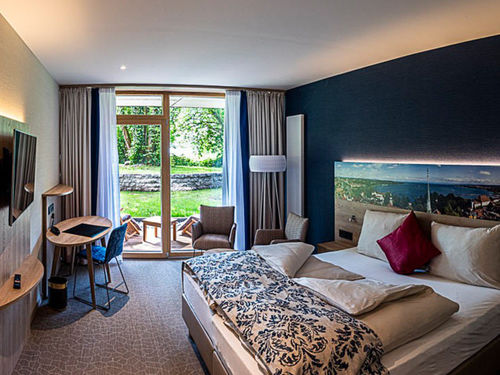 Das "Hotel Waldhaus Jakob" liegt mitten im Freizeit- und Erholungsgebiet von Konstanz. Von hier aus haben Sie einen wunderschönen Panoramablick auf das Schweizer Ufer des Bodensees. Das denkmalgeschützte Haus im Stil eines russischen Landhauses wurde 2006 komplett renoviert.