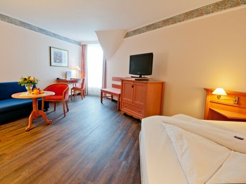 Gesundheit ist Ihr wichtigstes Kapital - vermehren Sie es in unserer Wellnessoase "Club Vital". Erwecken Sie Ihre Sinne mit angenehmen Düften, die aus Sauna, Dampfbad und Thermarium aufsteigen. Erfahren Sie die entspannende Wirkung einer Massage und relaxen Sie in unserem Erlebnisschwimmbad mit Frischwasser-Whirlpools (gegen Aufpreis) und Wasserattraktionen. Für unsere sportlichen Gäste steht ein hoteleigener Fitnessraum zur Verfügung.