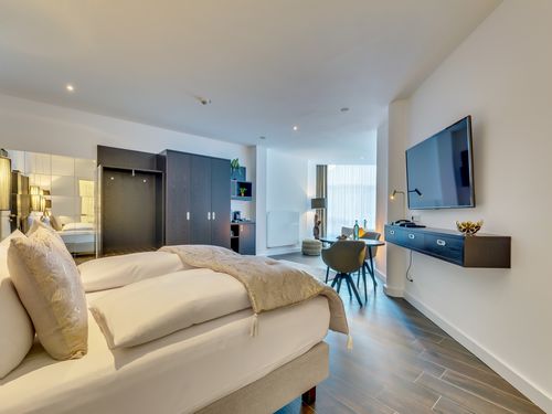 Anzahl Schlafzimmer, Kinderbett zustellbar, Aufbettung möglich, Anzahl Doppelbett/en, Babybett zustellbar, Sessel, Schlafcouch, Couch, Schreibtisch, Minibar, Sitzecke,