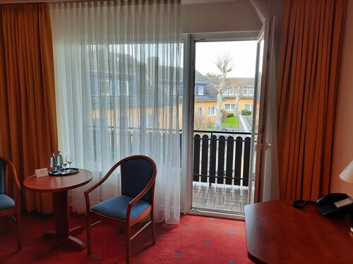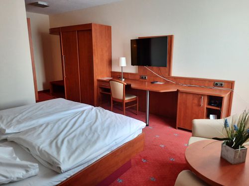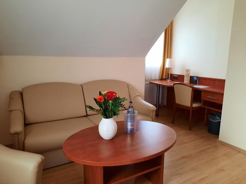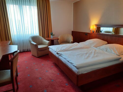 Besonderer Hinweis: Das Hotel verfügt nicht über behindertengerechte Zimmer. Einige Zimmer der KOMFORT-Kategorie und deren Badbereich sind mit einem Rollstuhl oder Rollator gut erreich- und befahrbar, haben jedoch keine abgesenkten Sanitäreinrichtungen oder speziellen Haltearmaturen. Der Schimmbad- und Saunabereich ist für Gäste mit eingeschränkter Mobilität nicht nutzbar, da der Zugang zum Schimmbecken über nur eine Treppe möglich ist.