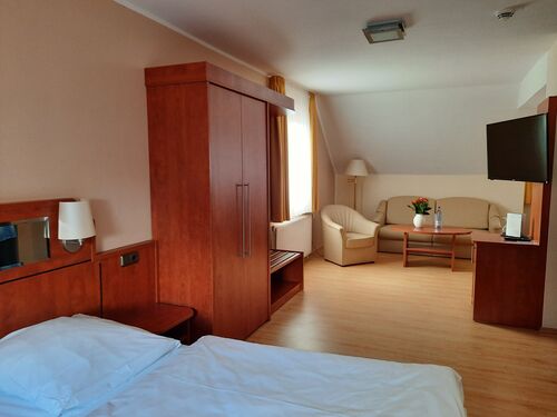In ruhiger Lage finden Sie am Rand der historischen Kleinstadt Königslutter am Elm (Norddeutschlands größter Buchenwald) die 3*- Komfort- Superior-Hotelanlage mit 174 komfortabel eingerichteten Zimmern, davon 7 Familienzimmer (5 mit zusätzlichem Schlafraum). Alle Zimmer sind mit Dusche oder Bad und WC, Farbfernseher mit Satelliten-TV und Selbstwahltelefon ausgestattet. Im gesamten Hotel ist W-Lan verfügbar und die Nutzung bereits im Preis inbegriffen.