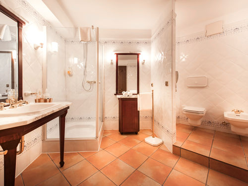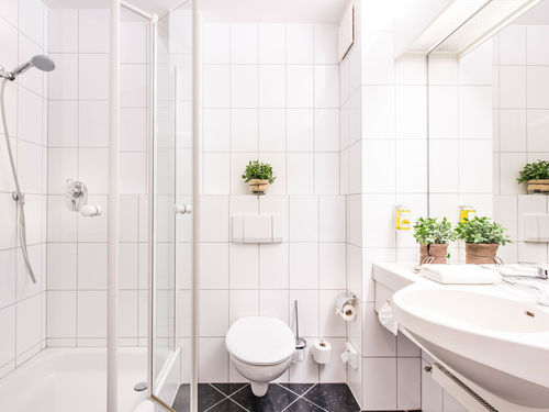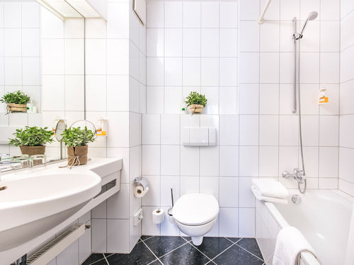 Dusche, Badewanne, WC, Handtücher, Haartrockner, Spiegel, Kosmetikspiegel,