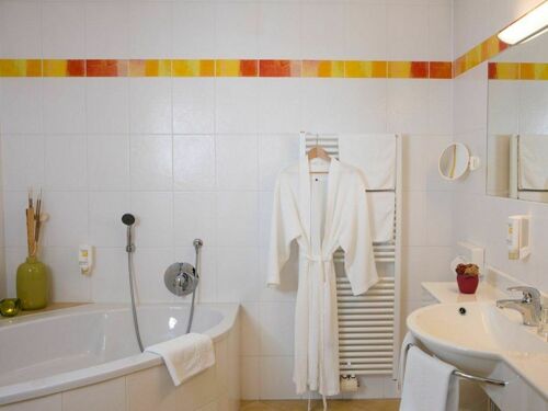 Dusche, Badewanne, WC, Handtücher, Haartrockner, Spiegel, Kosmetikspiegel, Handtuchtrockner, Bademantel,