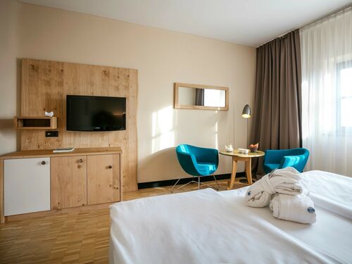 Check-in: Am Anreisetag ist der Eintritt in die Bade-, Thermal- und Saunalandschaft bereits ab 9 Uhr morgens inkludiert. Ihr Zimmer ist bis spätestens 16 Uhr für Sie bezugsfertig.