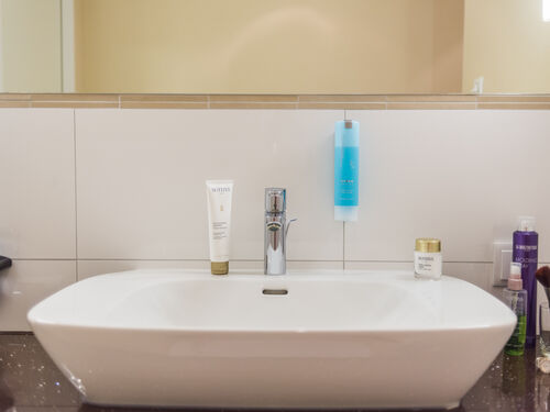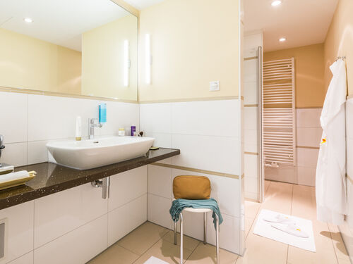 Dusche, WC, Handtücher, Haartrockner, Spiegel, Kosmetikspiegel, Handtuchtrockner, Bademantel,