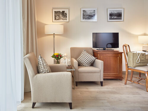 Anzahl Schlafzimmer, Anzahl Doppelbett/en, Babybett zustellbar, Sessel, Schreibtisch, Minibar, Zimmersafe, Ganzkörperspiegel, Sitzecke,