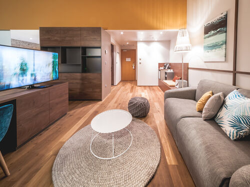 Kinderbett zustellbar, Anzahl Doppelbett/en, Babybett zustellbar, Sessel, Schlafcouch, Schreibtisch, Zimmersafe, Ganzkörperspiegel, Minibar kostenfrei, Kaffee-/Teezubereiter,