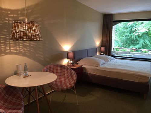 Unsere Hotelzimmer sind alle gleich groß (ca. 30 qm), haben eine kleine Pantryküche, möblierten Balkon, Dusche, WC, Fön, Kabel-TV, Telefon und Zimmer-Safe. Von einigen der Hotelzimmer haben Sie einen herrlichen Ausblick über Lütjenburg, die Holsteinische Schweiz und die Ostsee. Andere Zimmer bieten einen entspannten Blick auf die Tannenschlucht.