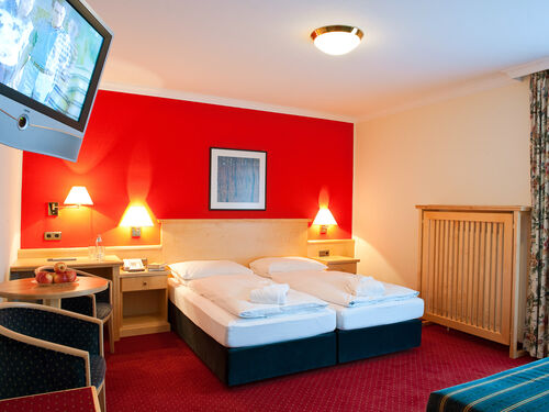 - Gemütlich eingerichtet sind die DOPPELZIMMER, welche über Bad oder Dusche mit WC, Sat-TV, Radio, Direktwahltelefon und einen Safe verfügen.