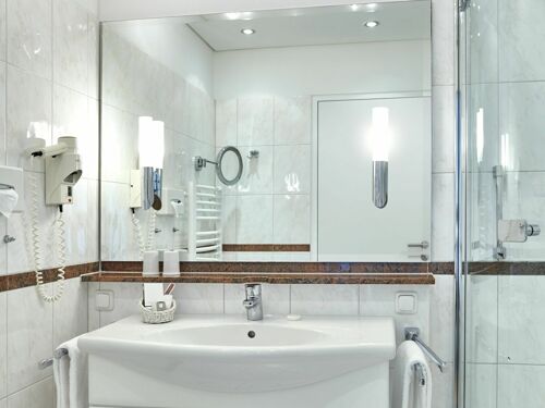 Dusche, WC, Handtücher, Anzahl Bad/Bäder, Spiegel, Kosmetikspiegel, Handtuchtrockner, Bademantel,