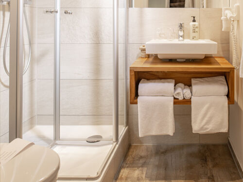 Dusche, WC, Handtücher, Spiegel, Kosmetikspiegel, Bademantel,