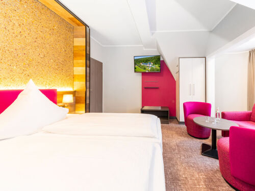 Die Komfortzimmer verfügen alle über ein Bad mit Badewanne und sind geräumig eingerichtet. Die Standardzimmer bieten Ihnen im Bad eine Dusche. Für Familien bieten wir Ihnen wunderschöne Dreibettzimmer oder Familienzimmer für bis zu 4 Personen. Außerdem bietet unser Haus ein rollstuhlgerechtes Zimmer mit separatem Eingang und Lift. Bei unseren Zimmern können Sie wählen zwischen Lubenbachblick oder Waldblick.