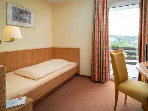 Vom Restaurant, dem Biergarten und den Balkonzimmern aus haben Sie einen wunderschönen Blick auf die Stadt und den Hohenrodskopf (764 m ). In nur 7 Gehminuten sind Sie mitten in der Altstadt.