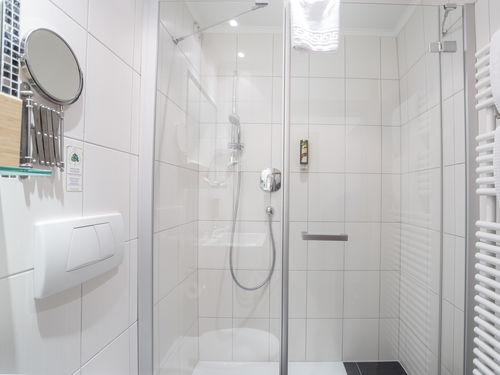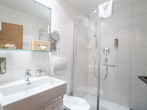 Dusche, WC, Handtücher, Anzahl Bad/Bäder, Spiegel, Kosmetikspiegel, Handtuchtrockner, Bademantel,