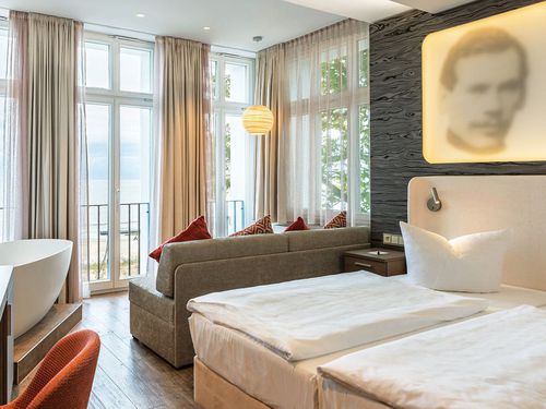 Hinter der historischen Fassade eines der traditionsreichsten Hotels auf der Sonneninsel Usedom verbirgt sich ein Ort moderner Gemütlichkeit. Meerblick soweit das Auge reicht – auch wenn Sie die Ostsee nicht direkt sehen können. Dazu begleiten Sie ein entspannter Moment vor dem großzügigen Kamin, ein gutes Buch aus der erlesenen Bibliothek, ein Cocktail an der trendigen Hotelbar und ein feines Gourmet-Menü im Restaurant »1922«? Klingt das nicht nach einem ganz besonderen Urlaubstag? Freuen Sie sich auf einzigartige Erlebnisse in Ihrem Haus am Meer.