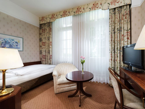 Zentral und dennoch mitten im Grünen, in Europas größtem Kurpark, starten Sie Ihre ausgedehnten Spaziergänge direkt mit dem ersten Schritt aus dem Hotel heraus. Auch die historische Altstadt mit ihren charmanten Fassaden entdecken Sie entspannt zu Fuß.