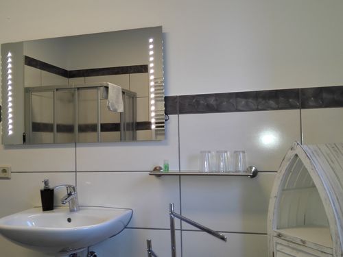 Dusche, WC, Handtücher, Spiegel, Kosmetikspiegel,