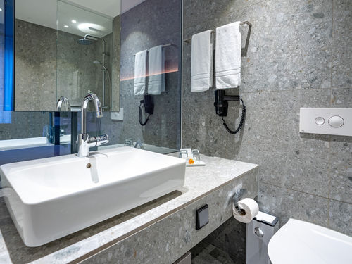 Dusche, WC, Handtücher, Haartrockner, Spiegel, Kosmetikspiegel,