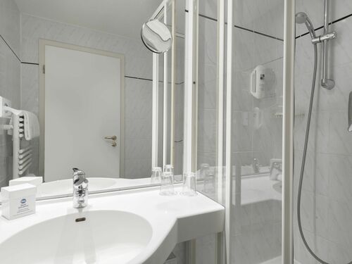 Dusche, WC, Handtücher, Anzahl Bad/Bäder, Spiegel, Kosmetikspiegel, Handtuchtrockner, Bademantel,