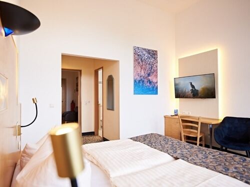 Darüber hinaus erreichen Sie das „Restaurant & Café Meereswarte“ sowie die stimmungsvolle „Sinatra Bar“ bequem trockenen Fußes über den Verbindungsgang der Hotels.