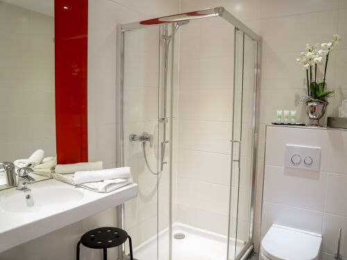 Dusche, WC, Handtücher, Spiegel, Kosmetikspiegel,