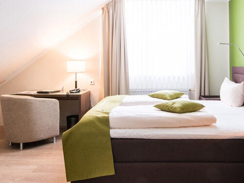 Unser Hotel wurde in 2014 kernsaniert und mit 25 Hotelzimmern und 13 Apartments ausgestattet. In unserem Neubau befinden sich moderne, komfortable Zimmer mit Nussbaummöbeln, Flatscreen TV, kostenlosem Internet-Anschluss.