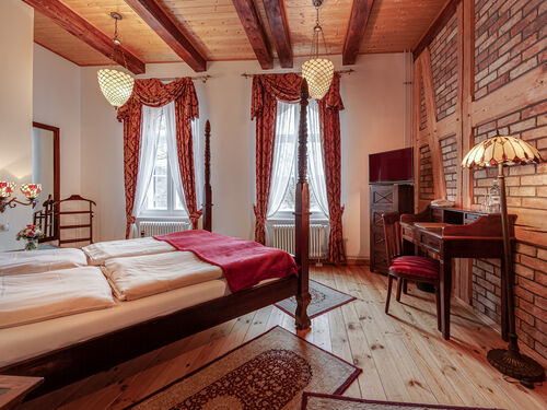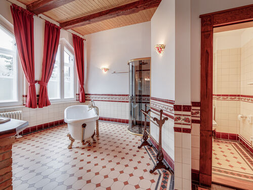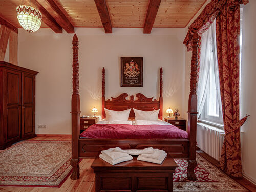 Sie haben die Wahl zwischen dem Gästehaus mit Doppelzimmern und Appartements, Ferienhäusern, dem Kutscherhaus, dem großen Reetdachhaus oder dem Jagdschloss selbst mit seiner Rosensuite und den Herren- und Kadettenzimmern.